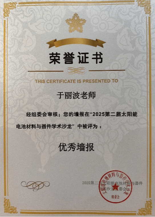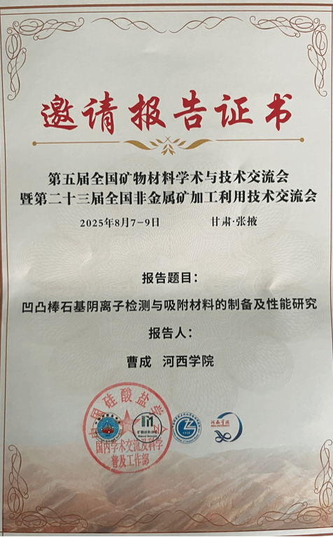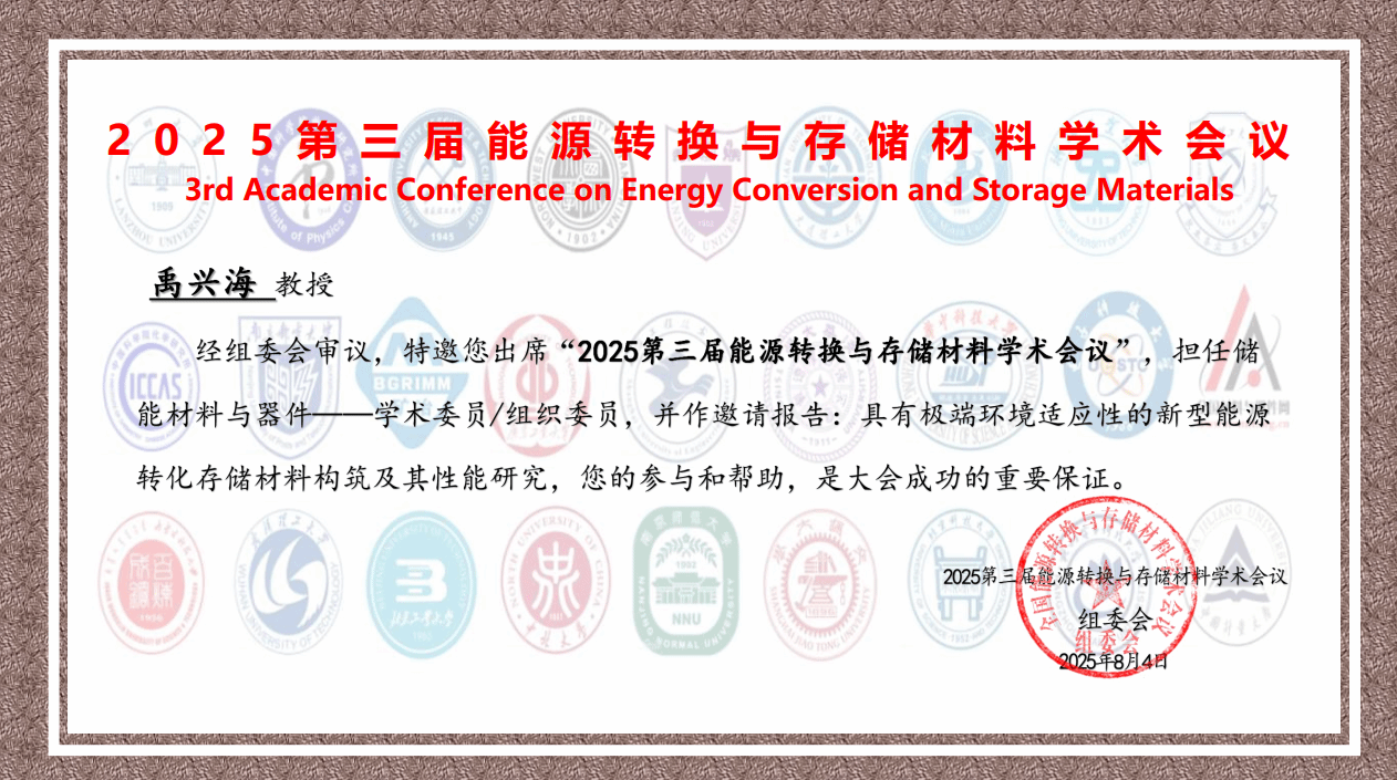 此外学院高度重视教师学术科研能力的提升,大力支持教师“走出去”,积极参加国内高水平学术会议。暑假期间,我院禹兴海教授应邀参加了“2025第三届能源转换与存储材料学术会议”并做专题学术报告;曹成教授在第五届全国矿物材料学术与技术交流会暨第二十三届全国非金属矿加工利用技术交流会做专题报告;李振教授、于丽波教授参加了第二届太阳能电池材料与器件学术沙龙;刘晓晴副教授参加了中国化学会第十三届全国有机化学学术会议。通过参与上述学术会议,并以学术报告、墙报等形式介绍我院科研工作情况,提升了学院及学科影响力。